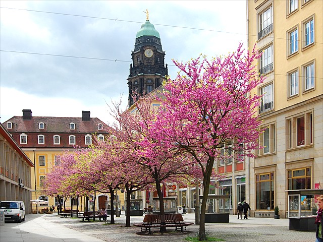 Erbaut 1768 bis 1770 von Landbaumeister Johann Friedrich Knöbel im Dresdner Barockstil. Zerstörung 13. Februar 1945. Mitarbeit des Architekten Dipl. Ing. Manfred Arlt am Wiederaufbau, von 1965 bis 1967, des Gewandhauses Bereich Westseite mit Einbau des Barockbrunnens vom Wohnhaus des Hofgoldschmiedes Melchior Dinglinger.