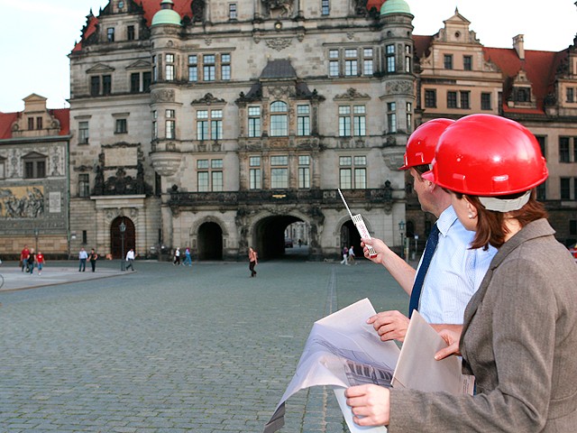 Errichtung 1530 bis 1535, Umbau 1889 bis 1902 von den Architekten Dunger und Frölich. Zerstörung 13. Februar 1945. Wiederaufbau im Baustil der Renaissance 1960 bis 1963 unter Leitung des Architekten Dipl. Ing. Manfred Arlt. Erstnutzung als Rechenzentrum der Stadt Dresden durch Aufstellung des ersten Großrechners R-300.