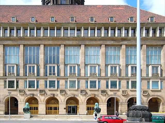 Erbaut 1905 bis 1910 durch Stadtbaumeister Edmund Bräter und Architekt Karl Roth im Neorenaissancestil mit Jugendstil- und Barockelementen. Zerstörung 13. Februar 1945. Wiederaufbau 1962 bis 1965 mit neuer Ostfassade nach neuem Raumprogramm mit Fest- und Abgeordnetensaal nach Entwürfen und unter Leitung des Architekten Dipl. Ing. Manfred Arlt. Aufgrund seiner Leistungen zeichnete ihn, als ersten Architekten nach dem 2. Weltkrieg, der Oberbürgermeister der Stadt Dresden mit dem Martin-Andersen-Nexö Kunstpreis der Stadt aus.