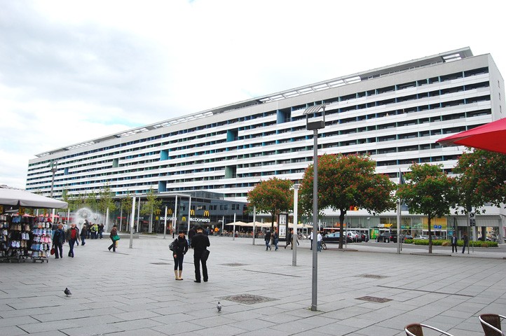 Erbaut in den 70er Jahren nach Entwürfen und unter Leitung des Architekten Dipl. Ing. Manfred Arlt in Stahlbetonfertigteilbauweise. Die Wohnzeile ist 240m lang und ist damit das längste Wohngebäude in Deutschland. Das Gebäude steht als sozialistisches Wohnkulturgut heute unter Denkmalschutz.